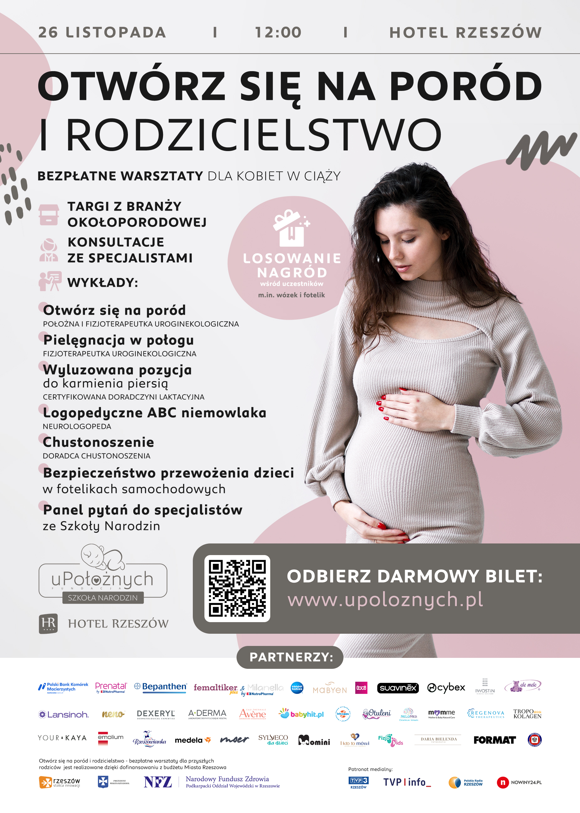 Już 26 listopada 2025 roku w sali bankietowej Hotelu Rzeszów odbędzie się VIII edycja bezpłatnych warsztatów dla przyszłych rodziców „OTWÓRZ SIĘ NA PORÓD I RODZICIELSTWO”.
